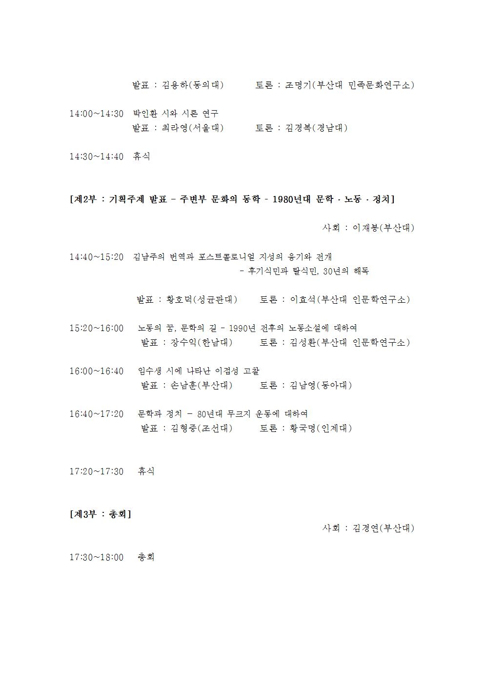 한국문학회 2017년도 하반기 전국학술대회 개최 안내(학술대회 자료집)